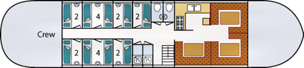 Unter Deck ist das Schiff gemütlich eingerichtet mit viel Platz und Komfort für die Gäste. Durch den Bau dieses typischen friesischen Platbodemschiffes ist es besonders geeignet um Gewässer von unterschiedlichem Tiefgang zu befahren. Tosend durch die Wellen vom IJsselmeer, auf Entdeckungsreise über die friesischen Binnengewässer oder durch die Prielen und Untiefen vom Watt.